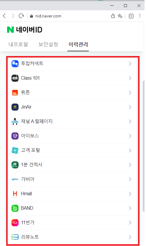 이제 네이버와 카카오 계정 간의 연결된 서비스를 확인해볼게요. 연결된 서비스를 확인하면, 어떤 서비스가 연결되어 있는지, 그리고 필요 없는 서비스는 무엇인지 알 수 있어요.